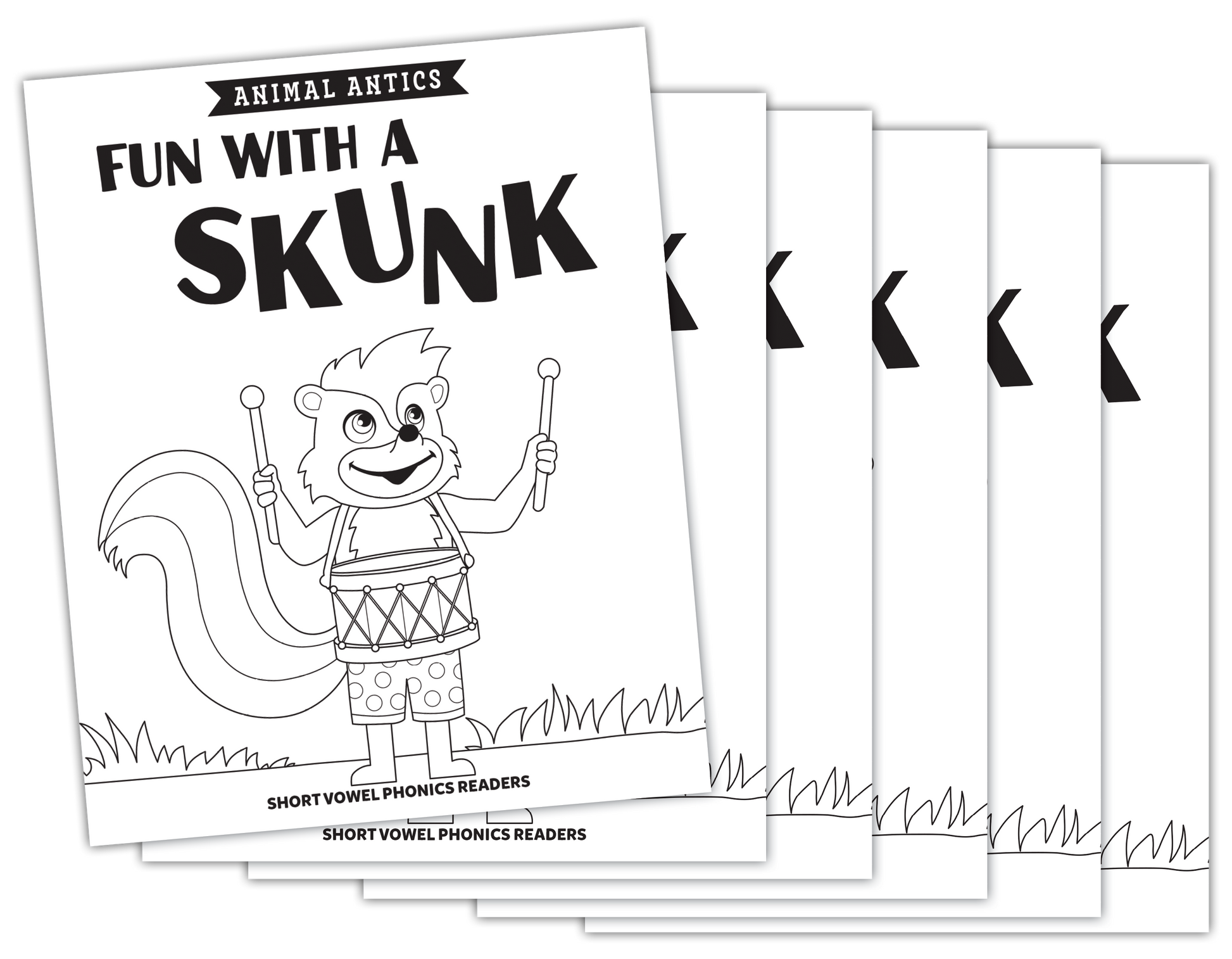 Animal Antics: Fun with a Skunk - Short u Vowel Reader (B/W version) - 6 Pack