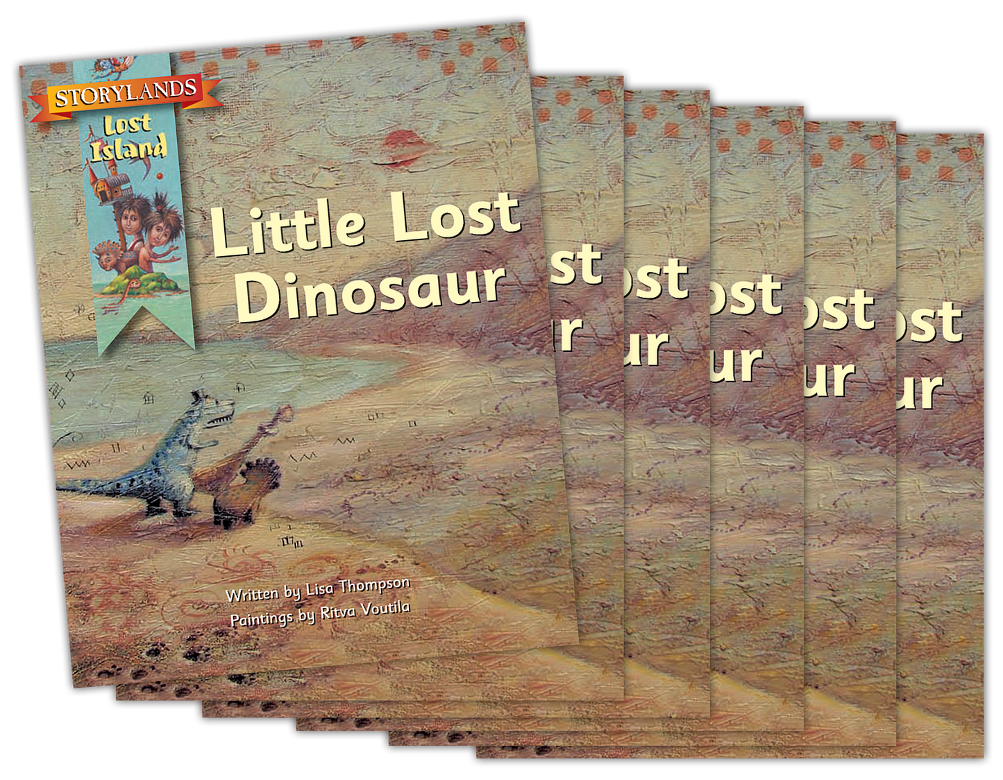 The baby dinosaur is lost. Where could she be? Set of 6 books.