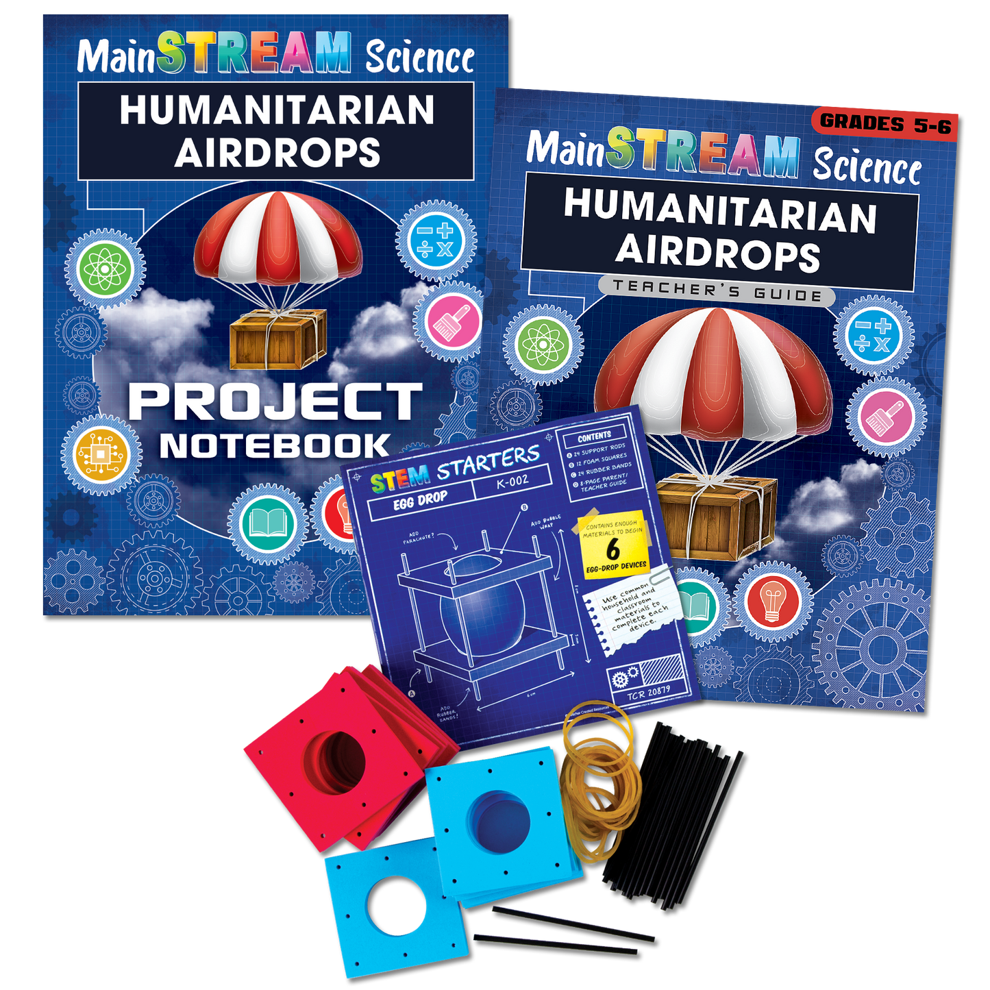 Students are faced with the challenge of designing and building a model of a parcel and parachute that will deliver necessary supplies to people in need following a natural disaster. In this project promoting the importance of humanitarian efforts, students will use the Egg Drop STEM Starter packs as a stepping stone for making their own airdrop system.