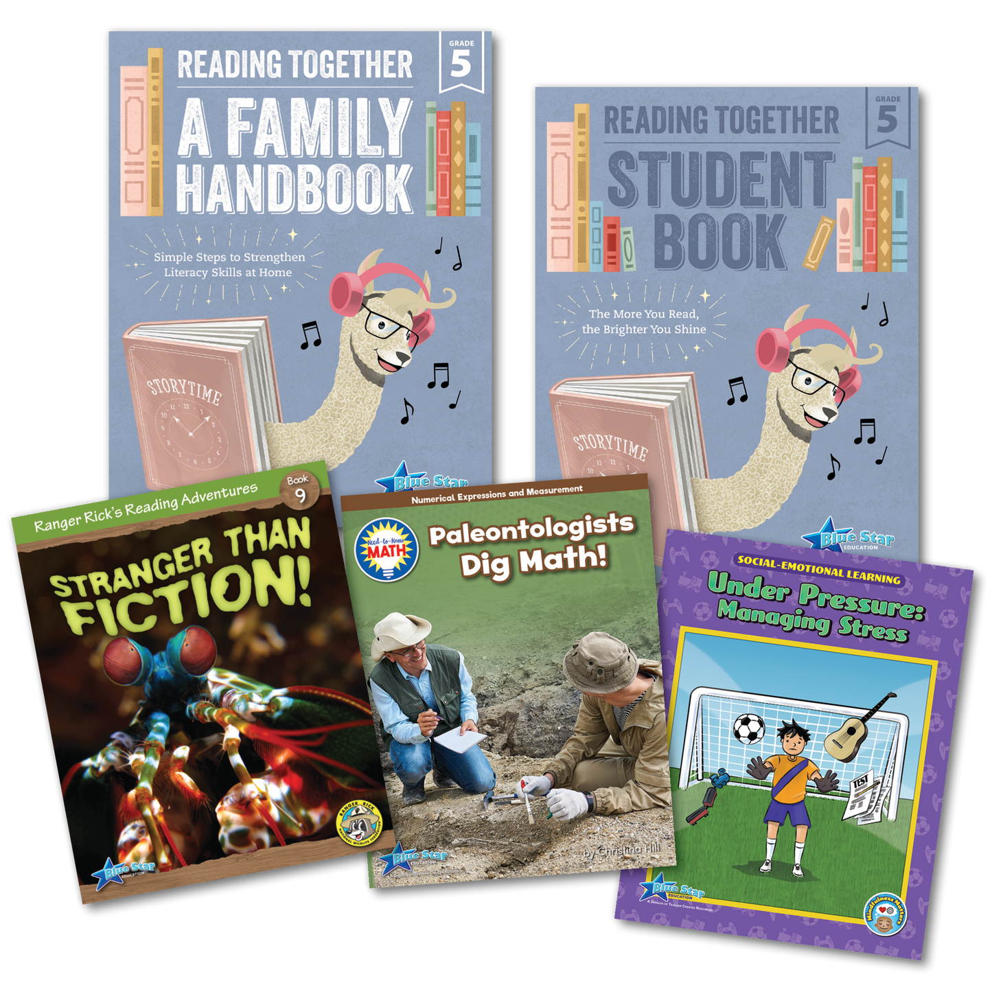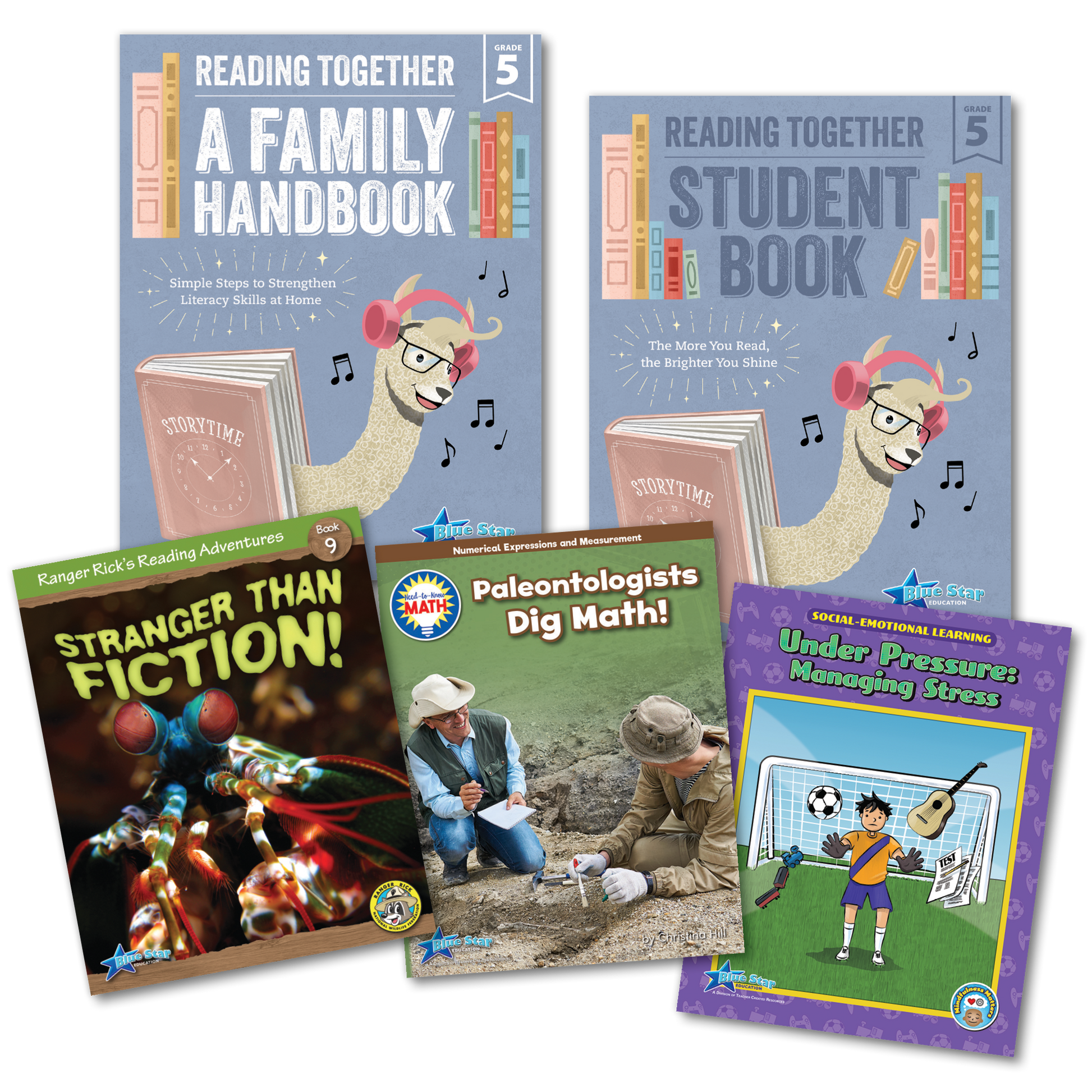 Three Grade-Appropriate Books: Fifth Grade pack includes three carefully selected books to match the specific interests and reading levels of students. Titles include Need-to-Know: Paleontologists Dig Math, Ranger Rick's Reading Adventures: Stranger Than Fiction, Mindfulness Matters: Under Pressure: Managing Stress