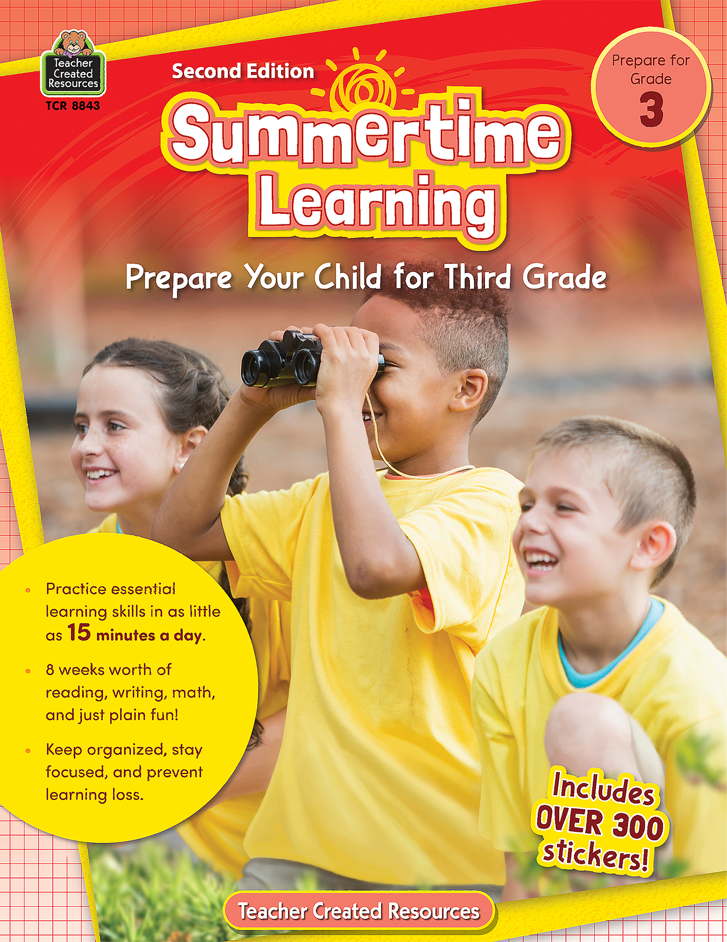 Features include:An 8-week daily schedule Monday-Thursday lessons that cover reading, writing, and math Friday activities that provide fun brain teasers Over 300 stickers in each book to track progress and reward good work A message from the National Summer Learning Association 112 pages: 2 pages of activities per day with answer keys Plus extras like reading lists, websites, and reference charts