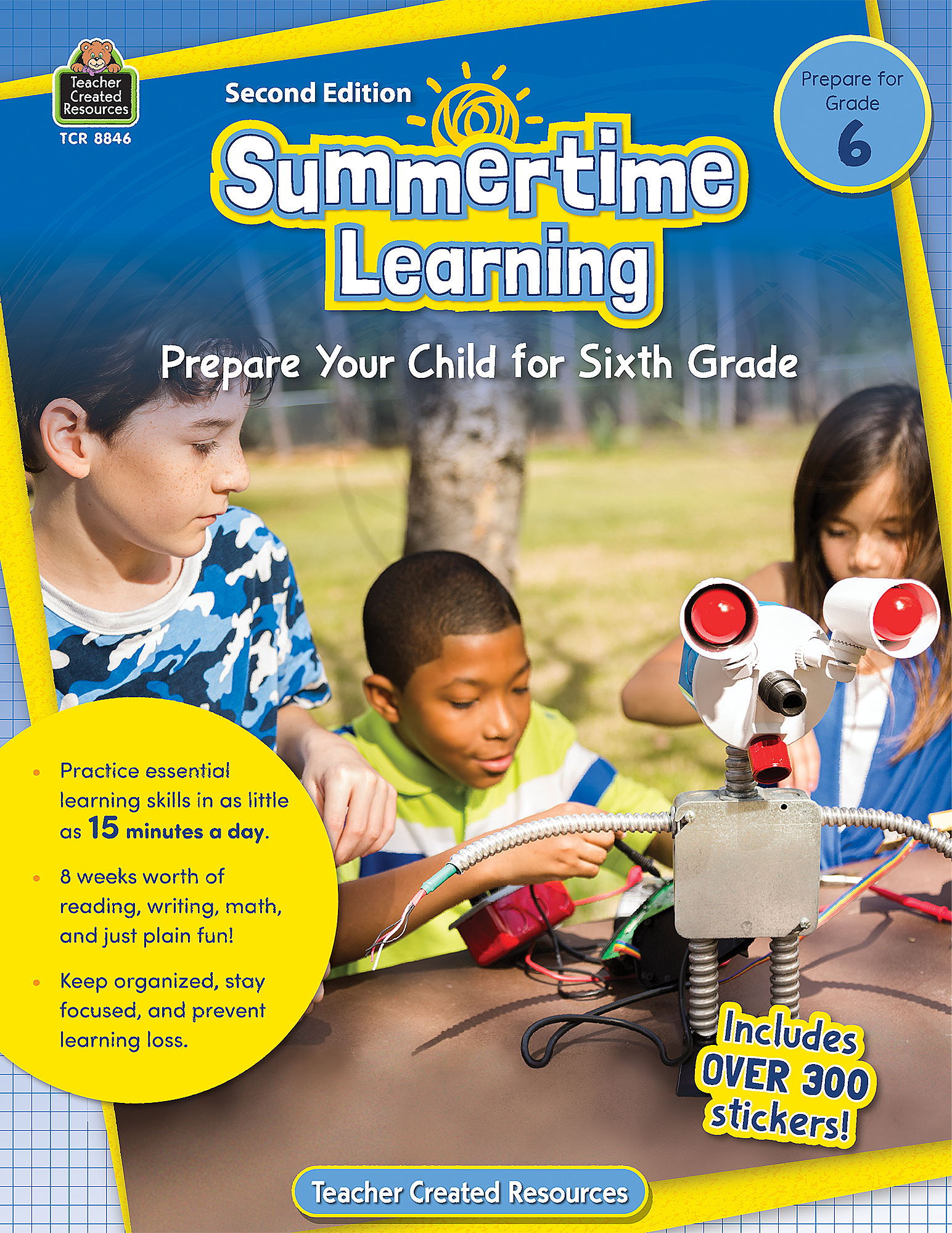 Features include:An 8-week daily schedule Monday-Thursday lessons that cover reading, writing, and math Friday activities that provide fun brain teasers A message from the National Summer Learning Association 112 pages: 2 pages of activities per day with answer keys Plus extras like reading lists, websites, and reference charts